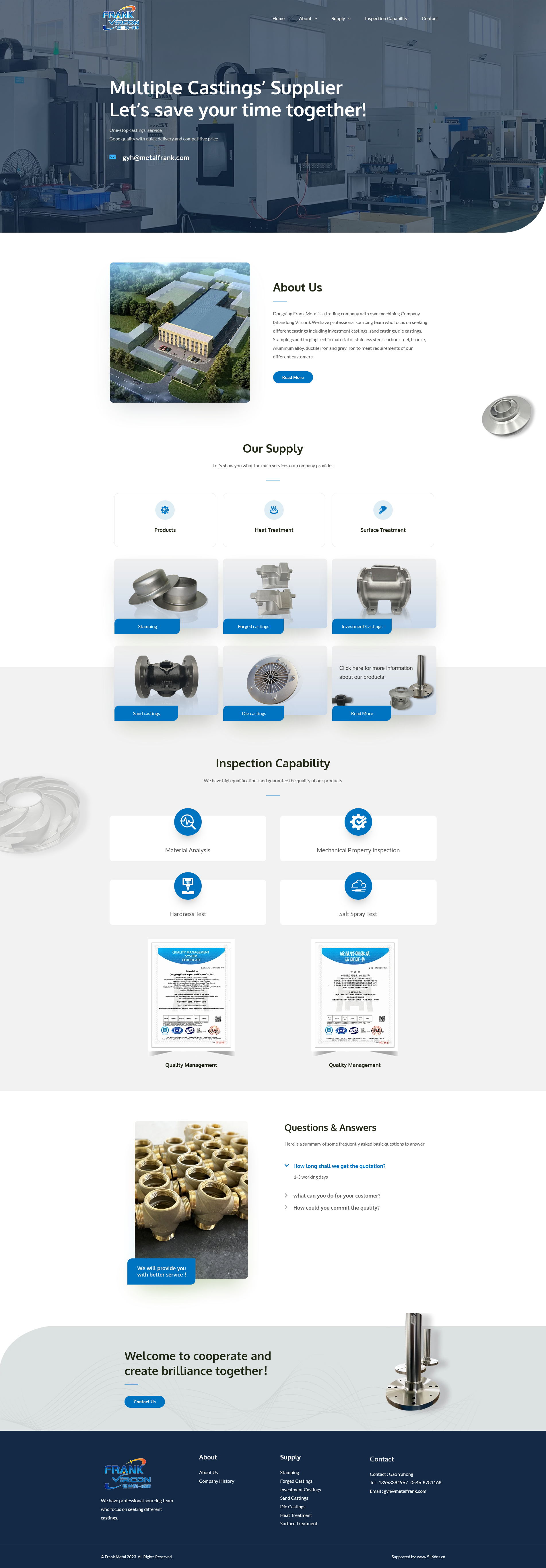 東營(yíng)福蘭科金屬有限公司是一家國(guó)際貿(mào)易公司,擁有自己的機(jī)械加工公司(山東威康)。公司擁有專業(yè)的采購團(tuán)隊(duì),專注于尋找不同材質(zhì)的鑄件,包括不銹鋼、碳鋼、青銅、鋁合金、球墨鑄鐵和灰鐵等材質(zhì)的熔模鑄造件、砂型鑄造件、壓鑄件、沖壓件和鍛件,以滿足不同客戶的需求。